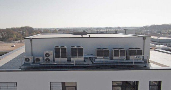 Bei Ostermann entwarfen wir aufeinander abgestimmte Konzepte. Dabei lieferten wir die erforderlichen fachplanerischen Berechnungen gleich mit. „Uns hat deren Professionalität und Zuverlässigkeit überzeugt“, erklärt Ostermann-Gebäudemanager Mathias Gehlmann. Ziel der umfassenden Klimatisierung war ein möglichst angenehmes Arbeiten in allen Büros. Die Spezialisten der Hans Hund GmbH entwickelten individuell anpassbare, aber stets zugfreie Lösungen. Diese erlauben es, dass in Büros mit höherer Sonnenstrahlung automatisch die Jalousien herunterfahren oder die Kühlung reagiert, während auf der Nordseite noch geheizt wird. Möglich macht es die Kombination aus intelligenter Steuerung und optimaler Zwangsbe- und -entlüftung mit hohem Wirkungsrad.